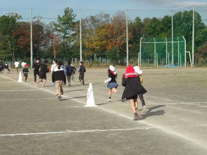 休み時間には、持久走の練習をしたり、築山でおにごっこをしたりして楽しみました。