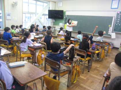 1組では、担任の先生による読み聞かせをしていました。