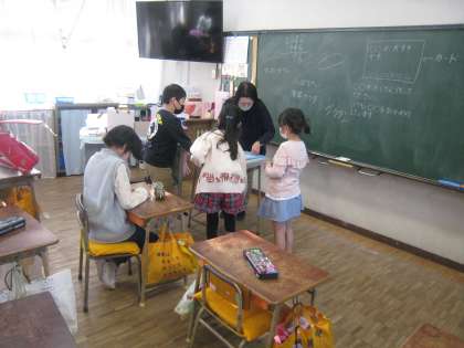 3年1組では、英語の授業。ふくわらいを英語を使って、楽しみました。