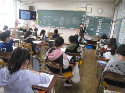 2組では、社会。静岡県の主な山や川など、特徴のある様子を学んでいました。