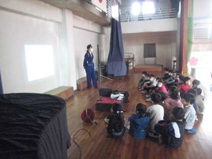 新一年生の保護者、新一年生を迎え、「旗振り講習会」が開かれました。