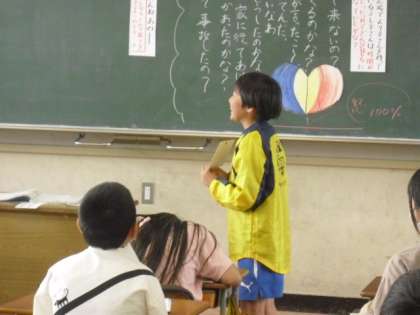 「道徳」資料の登場人物になって、相手(先生が演じています)にどんなことを言えばいいか考えました。