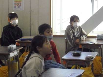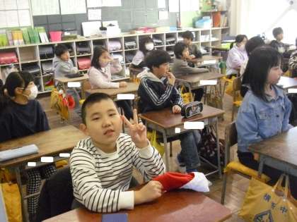 担任の先生の2学期のまとめのお話を聞いていところです。真剣に聞いています。