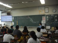 図画工作の授業です。版画の下書きとなる自画像を描いているところでした。