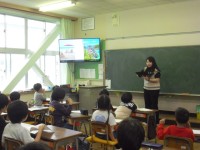 図画工作の授業「木版画」です。自画像を、彫刻刀を使って彫り進めています。