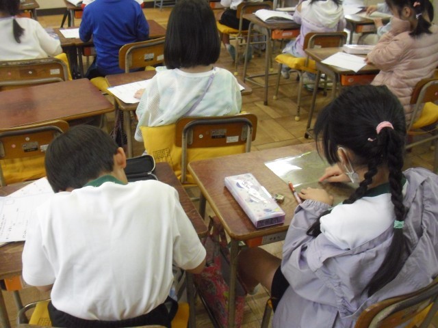 国語の授業です。新出漢字の学習をしています。その前の漢字テストでは、満点の子どもが多く、驚きました。