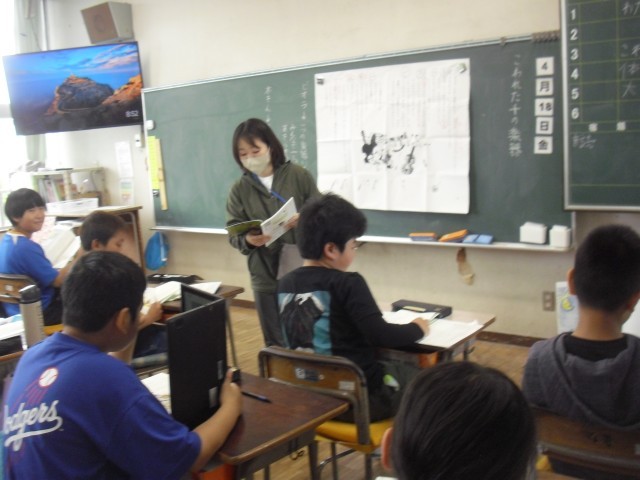 こちらのクラスも音読の練習をしています。こちらのクラスは○読みで練習しています。