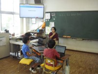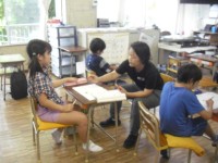 育成の授業です。教頭先生と一緒に国語の授業を行っています。漢字の練習をしていま...