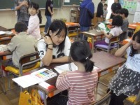 朝の様子です。6年生が1年生の朝の支度を手伝っています。でも、ほとんど自分ででき...
