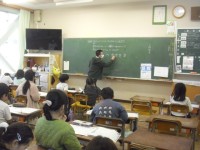国語の授業です。今日は担任の先生がお休みなので、別の先生が漢字の学習をしていま...