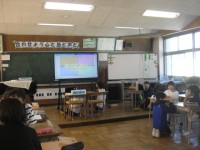 国語の授業です。「いろいろなふね」という教材を使って、説明文の学習をしています...