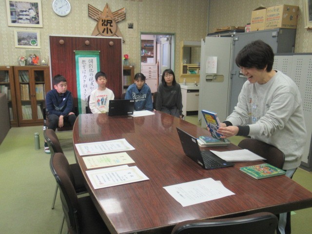 12日、校長室と各教室をオンラインでつないだリモート朝会がありました。
