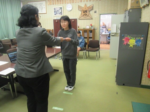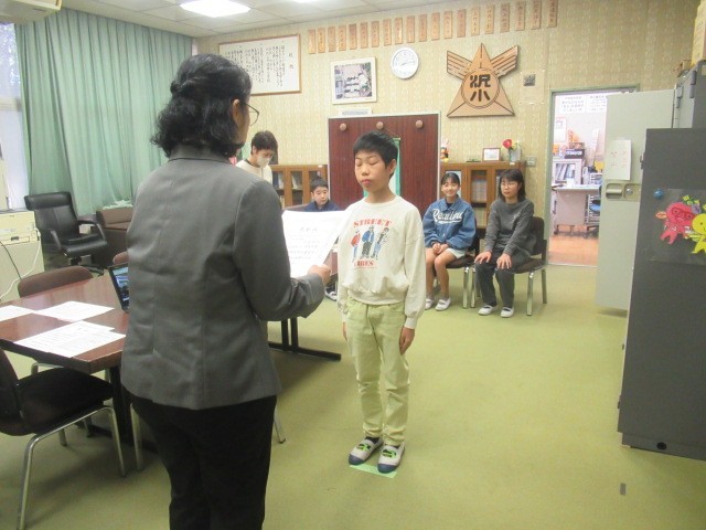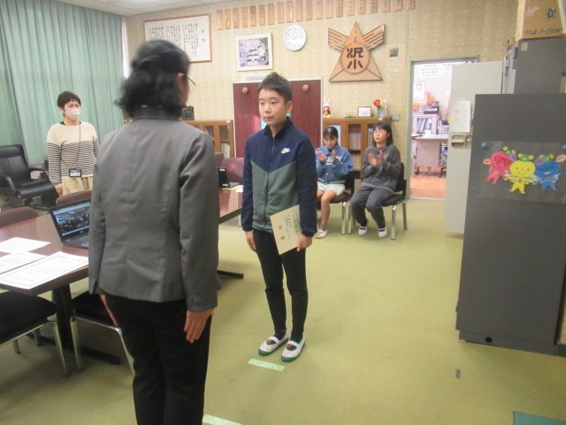 朝会の後、いろいろなコンクールですばらしい成績をおさめた子供たちの表彰がありました。