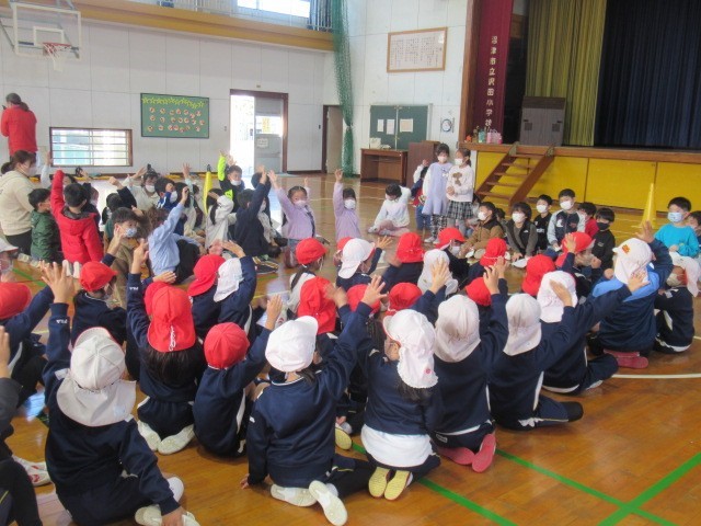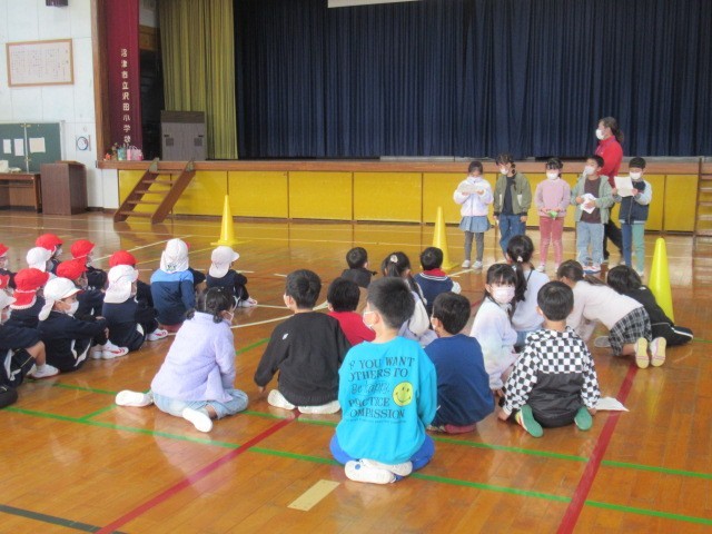 今日は、沼津学園第一幼稚園の年長さんが、沢田小に来てくれました。