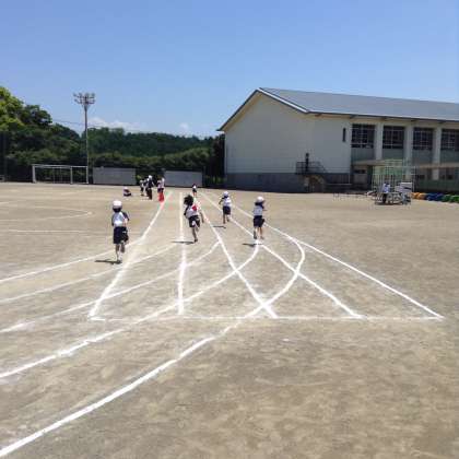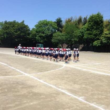 ダンスの練習の後、2年生は「紙ひこうきGo!ゴー!!」の練習をしました。並び方を確認し、実際に70m走ってみました。走った後も、静かに並んで座ることができました。
