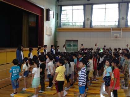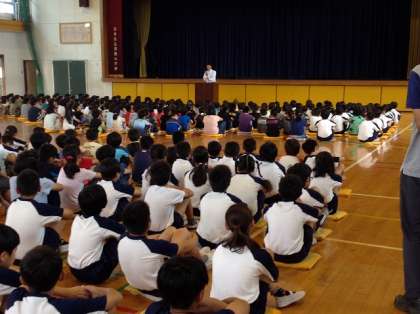 校長先生からは、沢田小学校と金岡小学校、金岡中学校の三校で一緒に取り組んでいる『楽しくねばり強く体力アップ』のお話です。