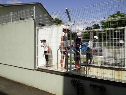 水泳の授業に向けて、6年生と5年生がプール清掃をしています!