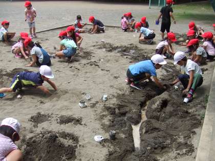 1年生は、図工の授業で砂を使った造形遊びをしました。泥団子を作ったり、水路を作ったり。とても楽しそうに取り組んでいました。