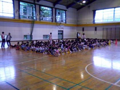 校長先生からは、「防犯教室に一生懸命取り組む。(聞くときには、しっかり聞く・声を出すときには、大きな声を出す)」と「自分の命を守る方法を覚える。」の2つのお願いがありました。