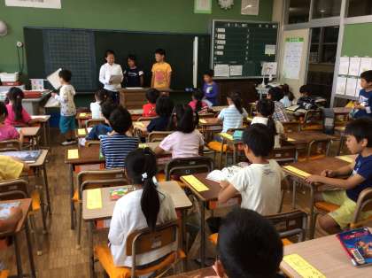 保健委員会のお兄さんお姉さんが、1年生に「歯ぴかぴかデー」の説明に来てくれました。毎月8の付く日は、特に歯磨きを意識しよう、という歯ぴかぴかデーです。給食の後に、一生懸命歯を磨いていました。