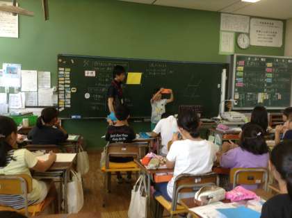 いろいろな四角形の学習をしています。今日は、平行四辺形の学習です。教育実習生の加藤先生が初めて授業をしています。平行四辺形を用意し、角や辺の長さに注目しています。