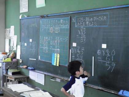 2年3組は、算数で引き算の学習です。