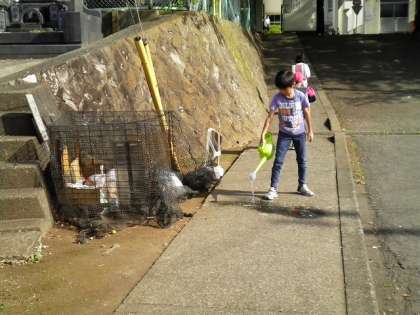 カラスが、ゴミ置き場を汚していました。