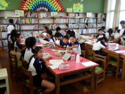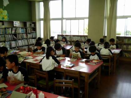 5年2組の朝の時間は、図書館で読書です♫