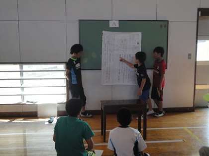 4月から交通安全リーダーに任命された6年生。自分たちが登下校で通る道を中心に、安全について考えてきたことをグループごと発表しました。