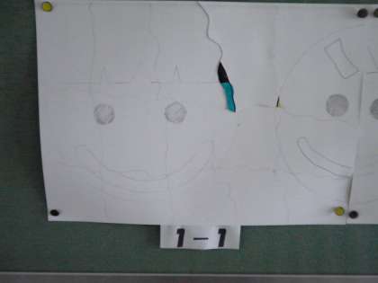 1年1組と3年1組、4年1組に1ピースがパズルに貼られました♪