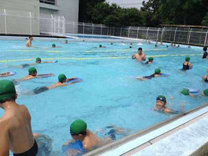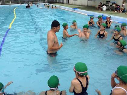 プールに響き渡るのは、子どもたちの声ばかりではありません。コーチのみなさんの、ポイントを押さえた指示が飛びます。うまくできたときも、力いっぱいほめてくれます。