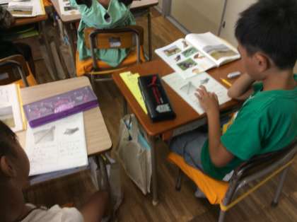 1年生は言語科の読解で、「くらべてみよう」という課題にチャレンジしました。国語「いきもののあし」で学習した、あひるのあしとぺんぎんの足を比べ、違いや共通するところを探しました。