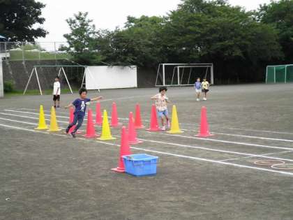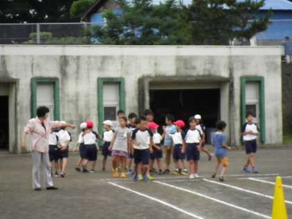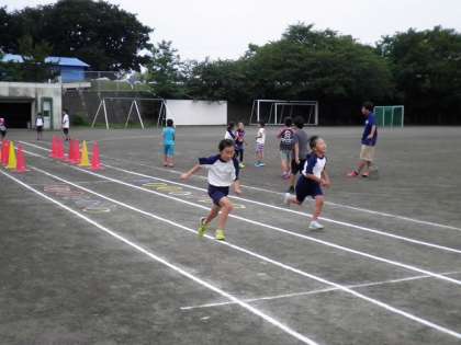きれいに引かれた50mのレーンにたくさんの子どもたちが並びます。