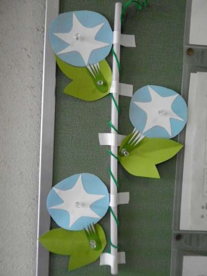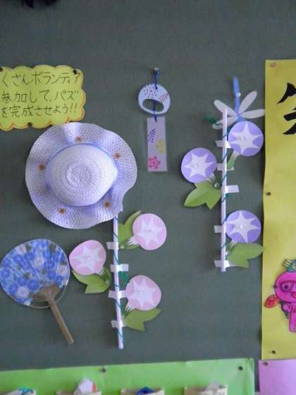”すまいるどおり”の掲示板には、あさがおが爽やかに、貼られています♫