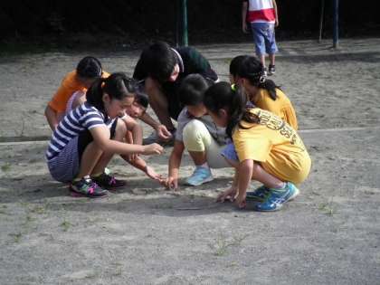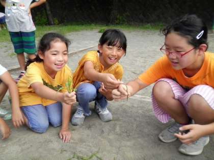 先生と一緒に草を取ります。