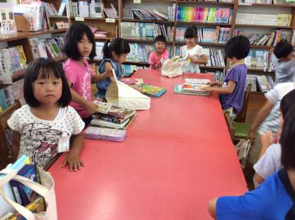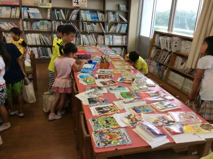1年生は、図書館で夏休み用の本を借りました。新着本の抽選もあり、うれしそうに本を選んでいました。