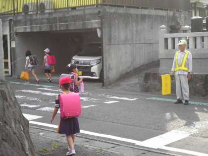 夏の交通安全県民運動に合わせ、地域の皆様が横断歩道で旗振りをしてくださいます♬
