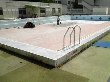 現在、大プール底の修繕が行われています。3年生、4年生、5年生、6年生の水泳については、2学期に授業時数を考慮して実施していきます。
