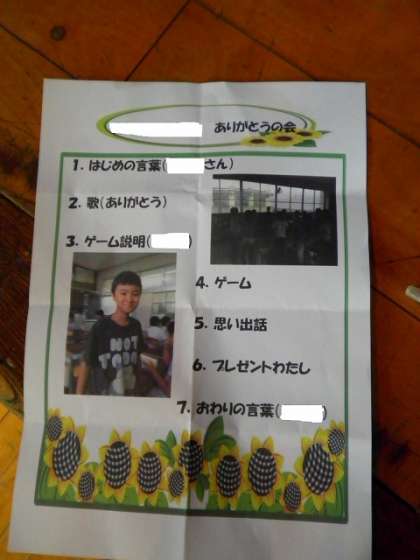 1学期で転校する友達のお別れの会が開かれています。