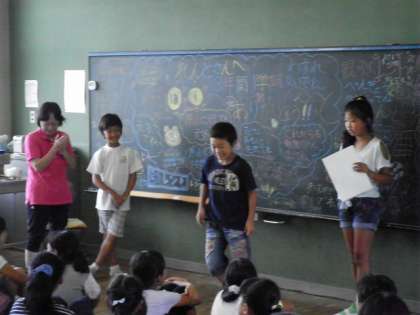 1学期で転校する友達のお別れの会と誕生日会が開かれています。