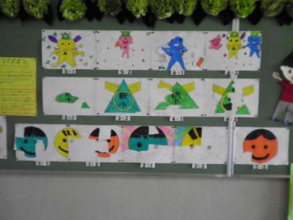 各学級のパズルのサミー、ワミー、ダミー、そして、校章は、カラフルに彩られています♫