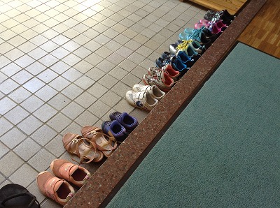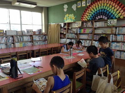 朝から、職員玄関に靴が並んでいます。夏休みの図書館開放日です。開館前から待っている姿も見られました。本がいつも身近にある沢田小の子らしい姿です。