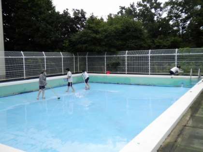 大プールの修繕も終わり、8月22日に職員でプールと周辺の清掃を行いました。