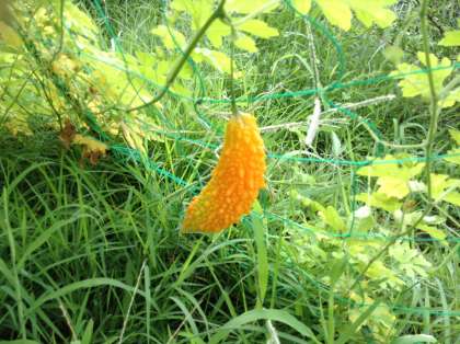 ヘチマは5個。大きな実がなっています。ゴーヤは、実が熟して色が変わってきました。2学期しっかり観察してください。