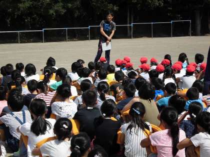 校長先生から、「災害はいつ起こるか分からない。訓練を真剣に行うことで、災害が起きたとき、最善の近い行動がとれる可能性が高まります。9月3日(日)の地域の防災訓練に参加して、自分自身と家族、そして、地域の人たちと命、身を守ることについて、しっかり考え、真剣に取り組んでいきましょう。」と話がありました。