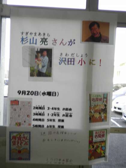 9月20日に行われる”杉山亮さん講演会”のポスターが中央廊下1階に貼られています。