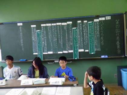 黒板には、事前に各学級の話合いによる意見が掲示されています!