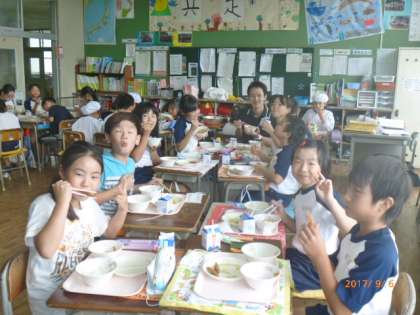 2017年9月6日の給食と4年生の様子