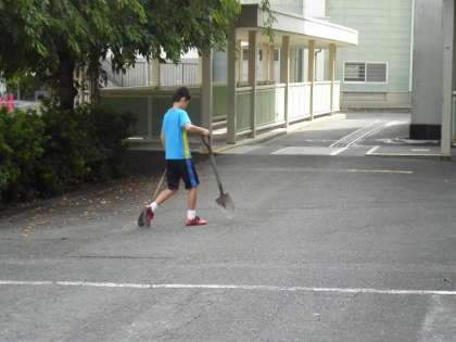 体育委員が朝運動終了後の後片付けをしています。 みんなの朝運動を支えています♩