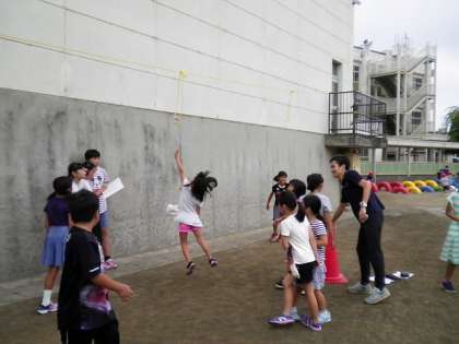 体育委員会の新しい企画”ジャンピングタッチ”が、賑わっています。